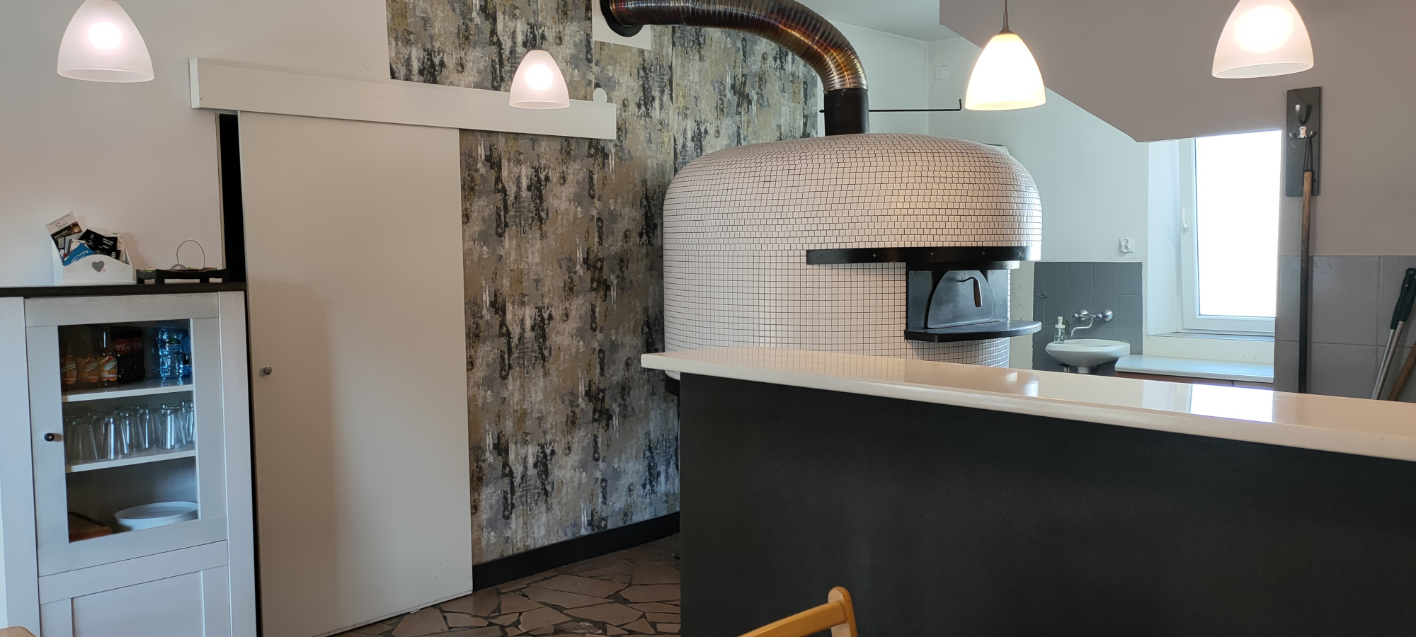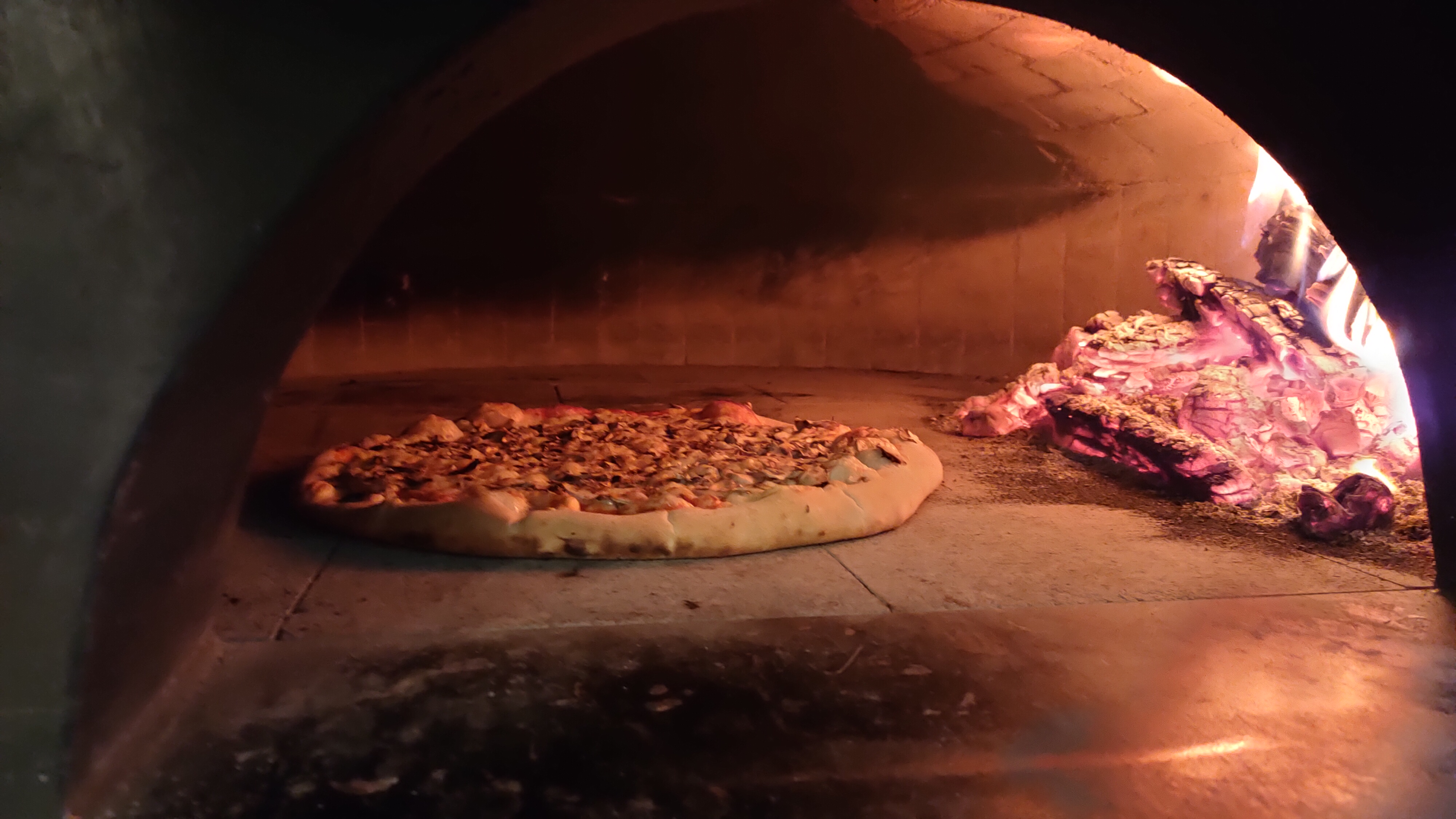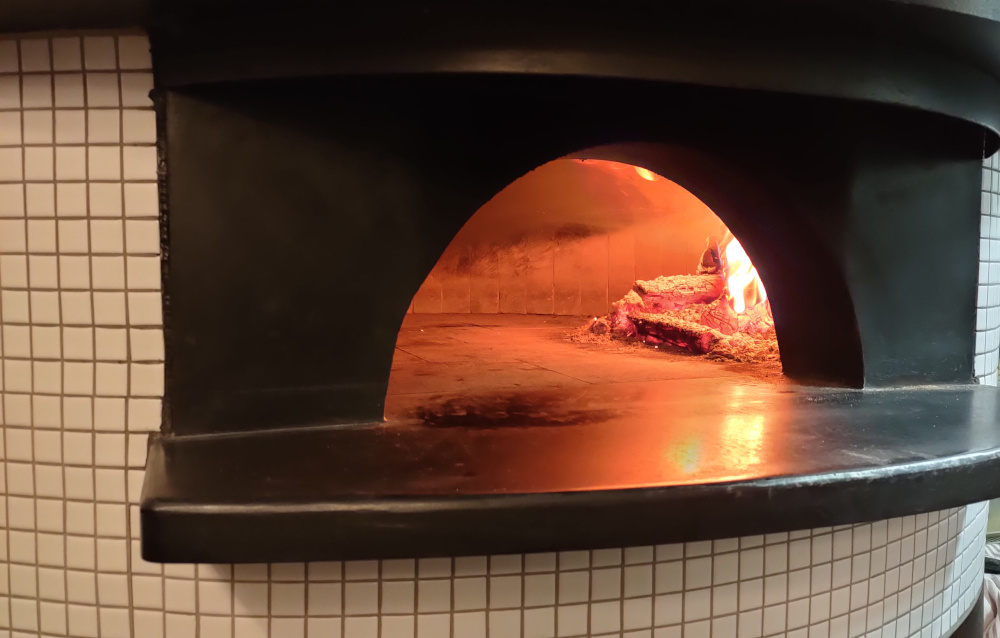 Polecamy pizzę wypiekaną w piecu opalanym drewnem.